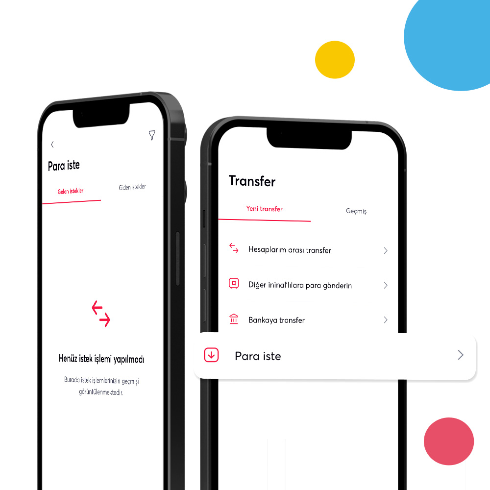 adımlarını takip edin, “Para iste” butonuna tıklayarak rehberinizdeki ininal’lılar arasından hızlıca seçim yapın. Hesabınızı seçin ve dilediğiniz tutarı girin. İsterseniz açıklamanızı emojilerle yazarak isteğinizi onaylayın.
